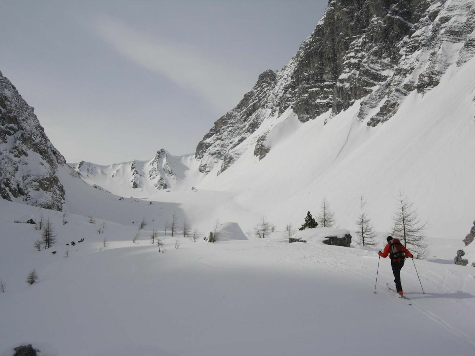 Bei der Abfahrt über Nordosten bis zum Ödenkare (Vorsicht: Wechten). Dort ganz rechts halten und durch das Kar Richtung Tal (sind die Wechten zu stark, rechts über die Felsen etwas abklettern).