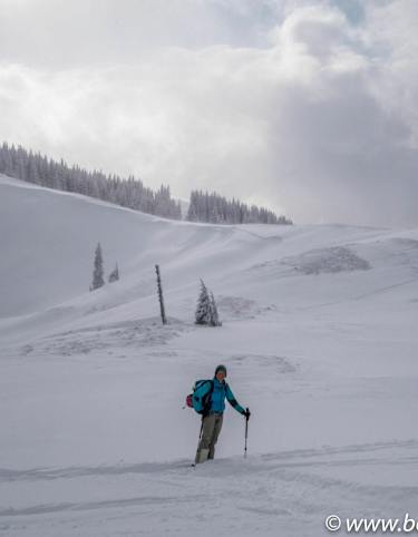 Ausgangspunkt der Tour ist der Ort Bartholomäberg. Vom Zentrum des Ortes geht es direkt den Hang hoch. Die Skiroute verläuft entlang der zum großen Teil beschilderten Schneeschuhroute. Vom Fritzasee orientiert man sich nach Nordosten und steigt ein Stück durch den Wald. Ab der Hütte mit dem großen Kreuz, führt die die Strecke nach links in Richtung Nordwesten hoch zum Westrücken.