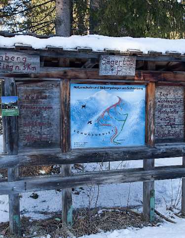Ausgangspunkt der Tour ist die Parkbucht von Neualmgries. Von dort geht es auf der Straße einige Meter zurück bis zur Schneise, die vom großen Nordkar der Kreuzspitze herunterführt.