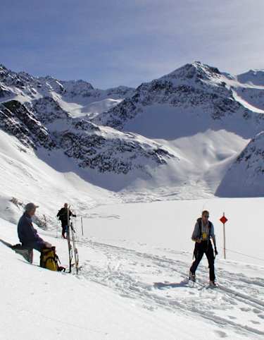 Die Abfahrt kan bei guter Schneelage vom Skidepot direkt ins Weiße Tal starten. Weiter unten trifft man nach einem kurzen Stück entlang des Kurztalgrabens wieder auf die Aufstiegsspur. Über diese fährt man zum Ausgangspunkt zurück.