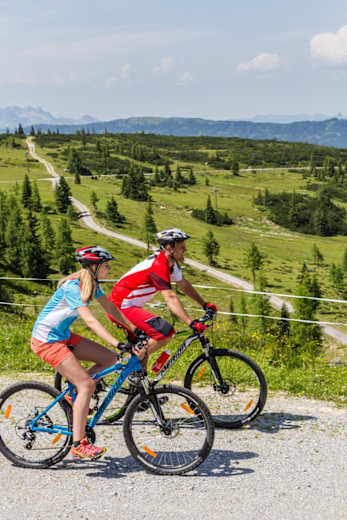 Landschaftlich schöne E-Bike-Tour im Pongau im Salzburger Land. Von Radstadt verläuft die Route auf Asphalt und Schotterwegen über Forstau zur Kleinen Almdorf Trinkeralm (1.800 m). Das Almdorf liegt inmitten des Ski- und Wanderparadies Fageralm.