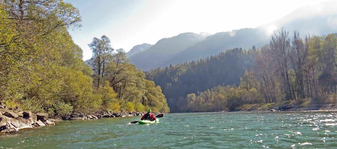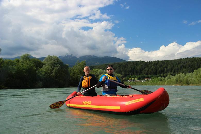 Kanutour auf der Drau von Lienz nach Spittal: 81 km auf der Drau, dem schnell fließenden Gletscherfluss mit sicherer Wasserführung und kurzen renaturierten Abschnitten im Drautal in Osttirol und Kärnten: Kein einziges Wehr behindert die Fahrt.