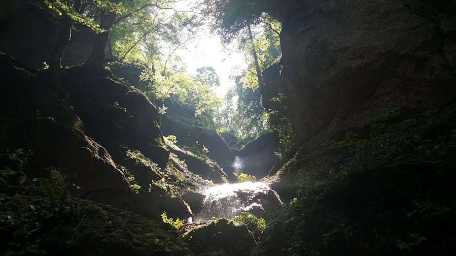 Nach dem Ortskern von Ebenthal biegt links ein Weg zu den Ebenthaler Wasserfällen ab, wo man gut picknicken kann.