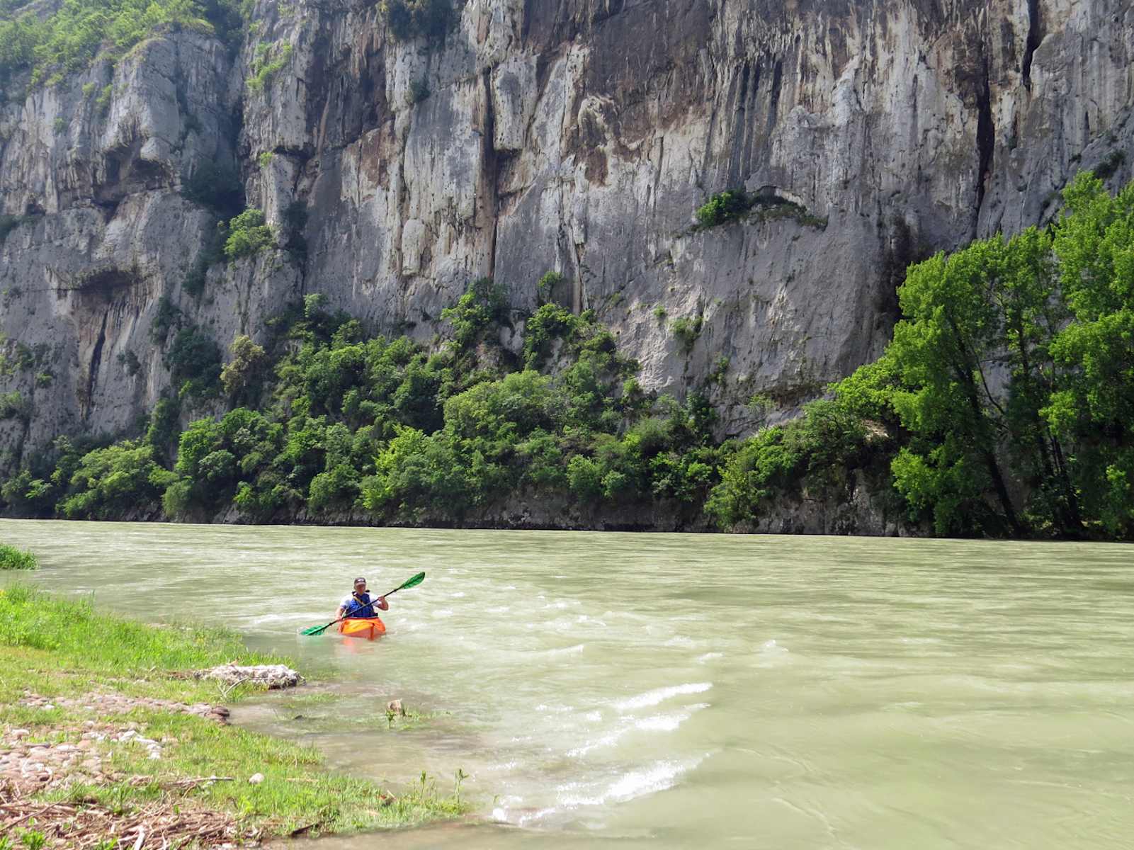 Auf der beschriebenen Strecke in den Gardaseebergen, nahe der italienischen Stadt Verona, gibt es nur leichte Schwallstrecken, keine Wehre, dafür eine abwechslungsreiche und fast einsame Fluss- und Schluchtlandschaft.
