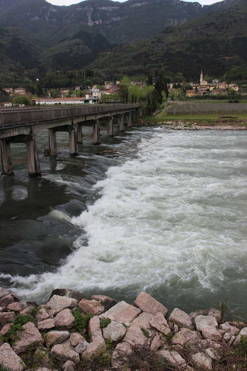Etsch-Flusschleife am Eingang der Veroneser Klause Foto: Alfons Zaunhuber Sohlschwelle bei Rivalta oberhalb der beschriebenen Flussstrecke Foto: Alfons Zaunhuber