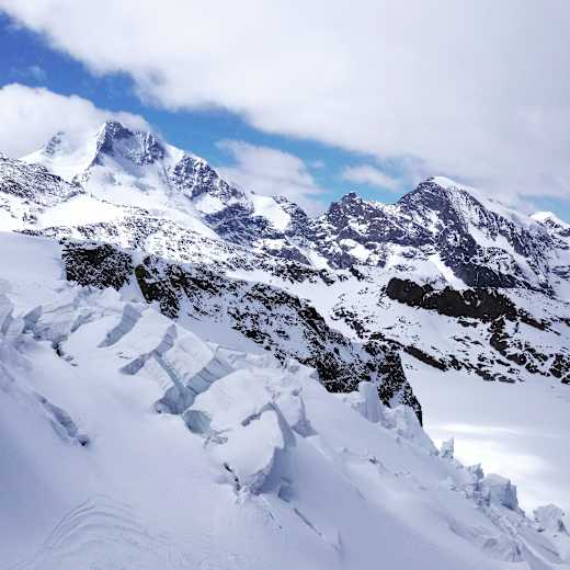 Den ansteigendem Persgletscher folgend gelangt man zwischen Gletscherbrüchen hindurch zur Schulter des Palü auf 3.730 m. Weiter geht es zu Fuss - meist mit Steigeisen - über die oft eisige Flanke zum Ostgipfel. Aufgrund der Ausgesetztheit besteht hier Absturzgefahr.