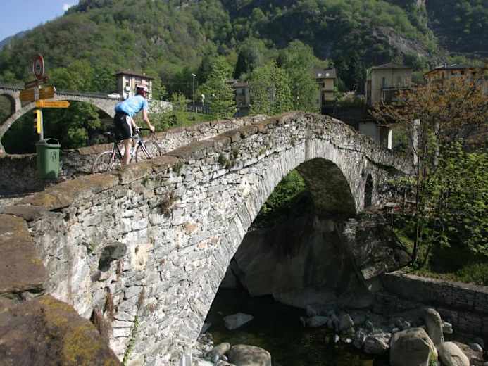 Diese leichte Veloroute beginnt in Airolo im Tessin. Von hier aus geht es Richtung Osten durch Ambri und Piotta - für einen Eishockey-Match bleibt wahrscheinlich keine Zeit, aber etwas später in Dazio kann man die alte Zollstation besichtigen, wo alle Gotthardfahrer ihre Maut gezahlt haben. Weiter geht es durch Faido, vorbei an wunderschönen Holzhäusern, deren Schnitzwerke einem sofort ins Auge springen.