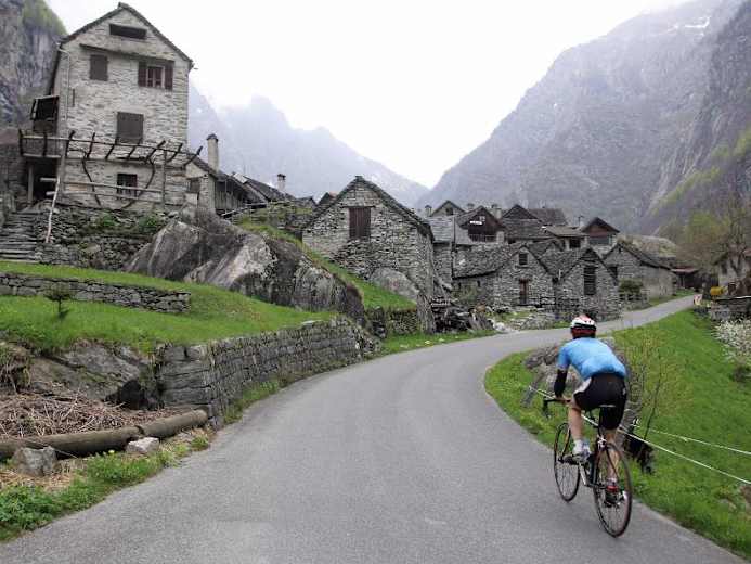 Durch das Maggiatal führt auch die zweite Etappe der Rennradtour Percorso Vallemaggia. Mit Start in Locarno - oder wer die ganze Tour am Stück fährt: Bellinzona - erreicht man 2 h später das Ziel in Cavergno. Den höchsten Punkt der Strecke markiert die Ebene rund um Cavergno mit knapp 470 m.
