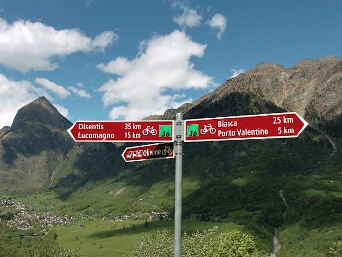 Nach dem Start erreicht man schnell Ludiano, nachdem man an der berühmten Burg Seravalle vorbeigefahren ist. Weiter geht es nach Prugiasco, Ponte Valentino und Aquila, bis das Etappenziel Olivone erreicht wird.