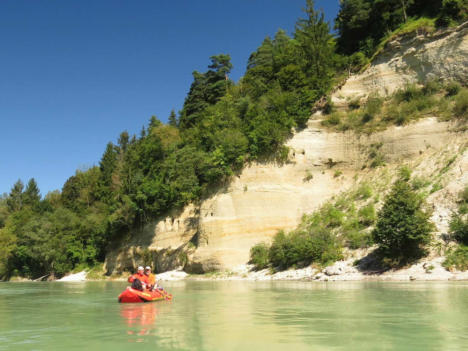 Flussreise entlang der bayerischen Grenze zu Oberösterreich: Ausgehend von einen Kilometer oberhalb von Steeg am rechten Flussufer an der sogenannten „Tränke“ (Welzau 30) führt diese Kanutour etwa 55 Kilometer die Salzach entlang.