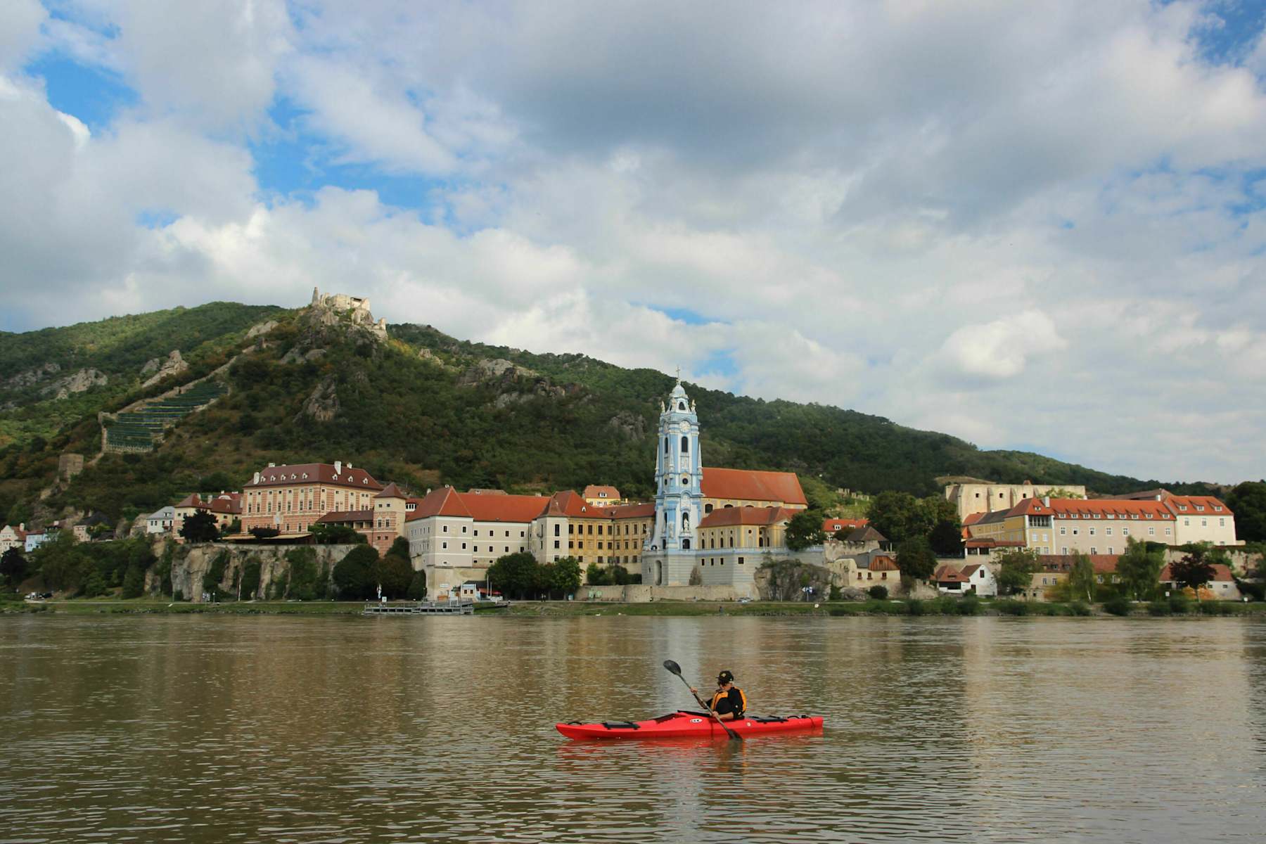Die 24 Kilometer lange Kanufahrt ohne ein störendes Wehr beginnt an einer Kiesbank vor dem Schloss Schönbühel, führt an den Weinhängen der Wachau vorbei und endet am Campingplatz in Rossatzbach. Da sich dieser Platz fast direkt gegenüber dem malerischen Ort Dürrnstein mit seinem himmelblauen Kirchturm befindet, kann man das Fahrtende nicht verpassen.