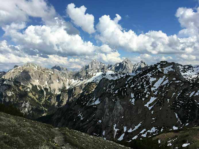Dann dem Weg unter dem Aggenstein folgen und über den Bösen Tritt wieder bergauf. Von dort wieder hinab Richtung Sebenalm und über die Vilser Scharte auf den Gipfel des Brentenjochs (2.000 m).
