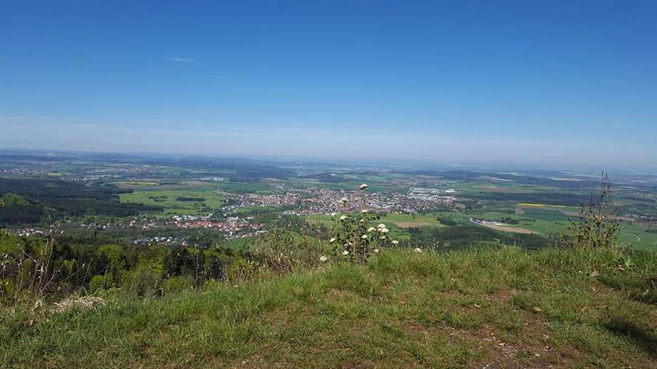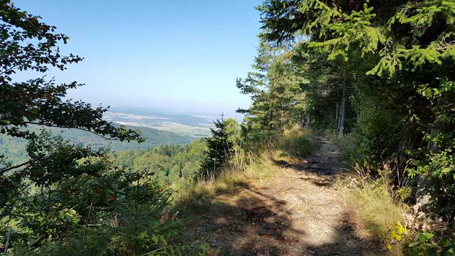 Über mehrere Singeltrails geht es ca. 350 HM noch oben auf den ersten schönen Ausblick. Ein Grat von dem man eine gute Aussicht auf den Schwarzwald hat, führt auf den 931 m hohen Hundsrücken.