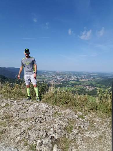 Vom Sportgelände aus geht es einen kleinen Trail Richtung Böllat hoch. Eine geniale Aussicht erwartet den Läufer hier oben.