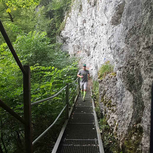 Der Trailrun rund um Albstadt in Baden-Württemberg führt gleich über mehrere Berge wie den Böllat, die Schalksburg, den Gräbelesberg, die Hossinger Leiter, den Torfelsen, den Mahlesfelsen, den Schlossfelsen und das Zellerhorn. Der lange und recht anspruchsvolle Trail führt am Albtrauf entlang.