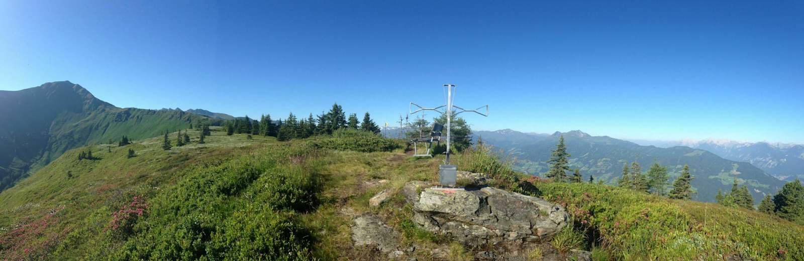 Das Wiedersbergerhorn Foto: Christina Sautner Wunderbare Aussicht auf die umliegenden Berge Foto: Christina Sautner Gute Fernsicht Foto: Christina Sautner Abendstimmung am Wiedersbergerhorn Foto: Christina Sautner Sehr schöner und aussichtsreicher Trail, der aber durchaus auch Konzentration verlangt. Foto: Christina Sautner Bunte Blumenwiesen im Alpbachtal Foto: Christina Sautner Gipfelkreuz am Wiedersbergerhorn Foto: Christina Sautner Bildergalerie (7)