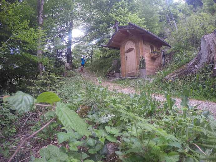 Vorbei an einem kleinen Wasserfall kommt man schließlich auf den Leonhardstockweg. Auf diesem geht es in schönem Auf und Ab dahin bis man den Mariensteig erreicht.