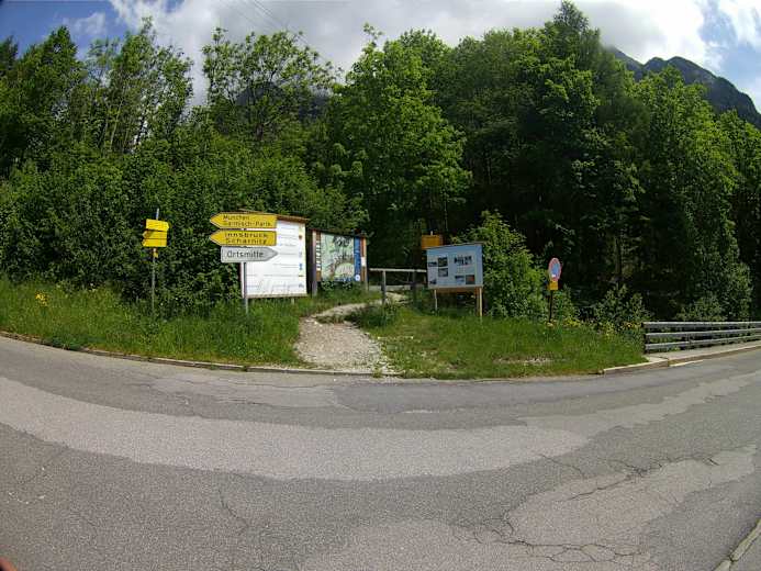 Parkplatz an der Umfahrungsstraße Mittenwald, oder in der Nähe der Talstation der Karwendelbahn an der Isar.