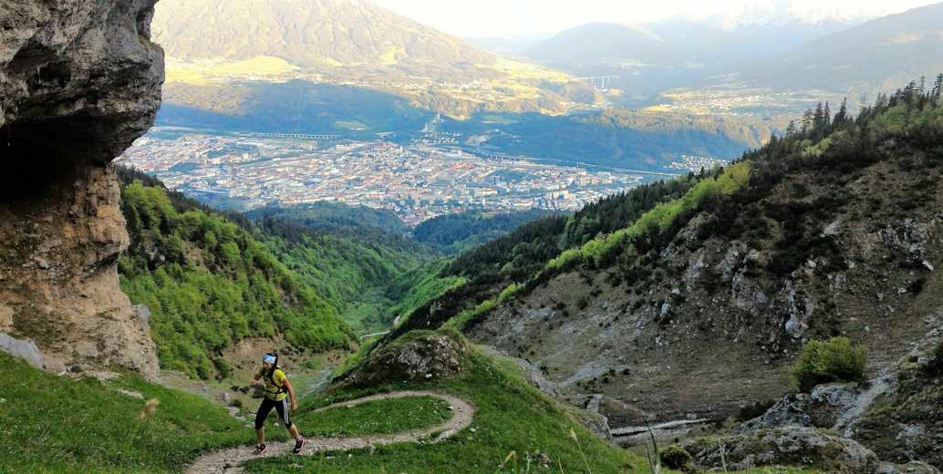 Direkt von Innsbruck ausgehend ist dies ein wunderschöner Trail auf die Höttinger Alm (1.487 m) an der Flanke der Nordkette im Karwendel, den man auch am späteren Nachmittag noch gut machen kann.