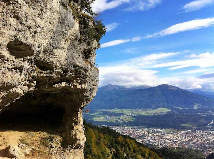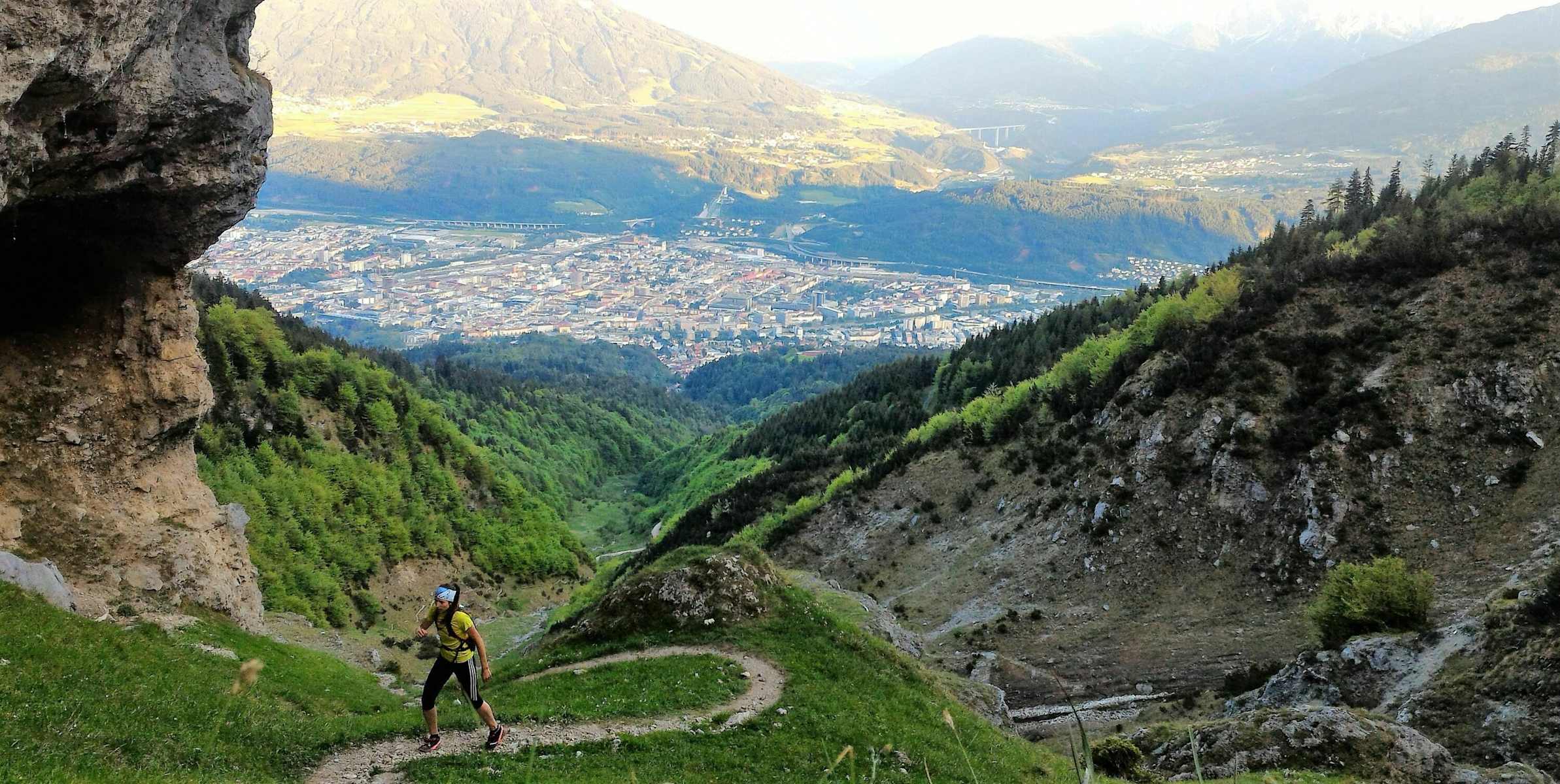 Im Höttinger Graben geht es immer geradeaus aufwärts. Foto: Rosanna Buchauer Immer aufwärts Foto: Rosanna Buchauer Vorbei an der Kletterhöhle Foto: Rosanna Buchauer Die Hochlandrinder - ein umtrügerisches Zeichen, dass man nicht mehr lange zu laufen hat. Foto: Rosanna Buchauer Ausblick auf Innsbruck Foto: Rosanna Buchauer Bildergalerie (5)