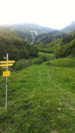 Runter geht es entweder über den gleichen Weg oder, wenn man von der Hütte ins Tal schaut, links den Steig hinunter.