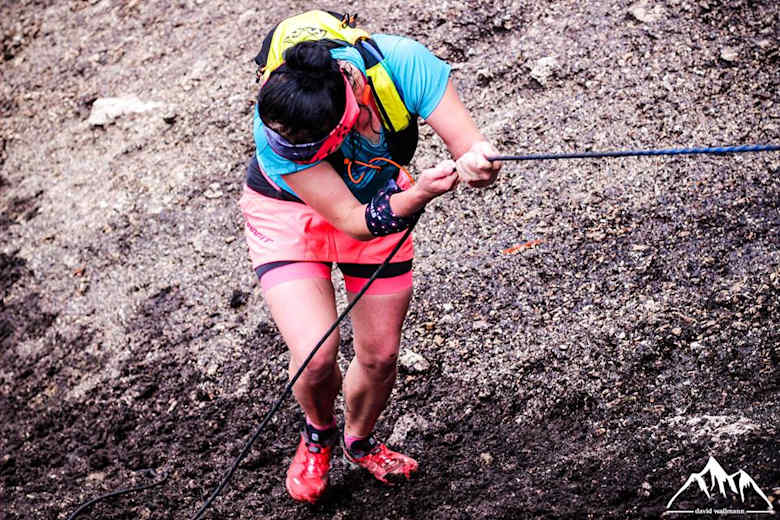 Eine sehr steile Passage wird mittels Fixseil überwunden Foto: Sarah Voelkel