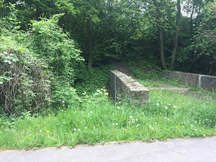 Dieser biegt nach ca. 400 m nach links ab und man kommt auf einen Wanderweg. Geradeaus weiter bis zur Kreuzung. Dort nahezu geradeaus auf einen kleinen Trail zwischen den beiden Wanderwegen. Dieser schlängelt sich durch den Wald, verzweigt sich öfters und endet auf einem Fußweg am Bach. Läuft man diesen nach links weiter, kommt man wieder zum Ausgangspunkt zurück.