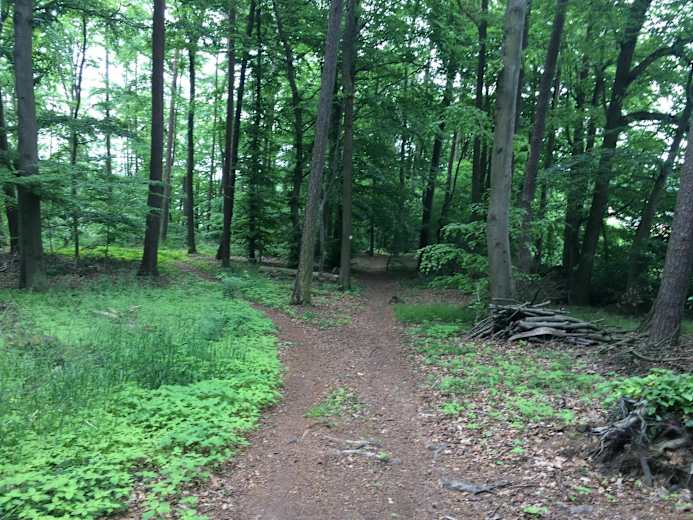 An der Lichtung weiter nach links Richtung „Üchtelhausen“ und dann dem rechten Weg folgen. An der nächsten Kreuzung hält man sich halbrechts und folgt den Trail auf der linken Seite, bis zur „Dianeslust“.