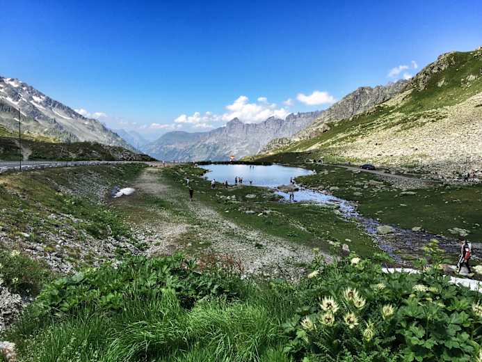 Nach der letzten Serpentine folgt man der Straße erst ostwärts, dann in nordwestliche Richtung vorbei am Lago dei Morti auf die kleine Hochebene am Gotthardpass, wo man auf 2.091 m Höhe endlich die heißersehnte Passhöhe erreicht. Auf der neuen Passstraße geht es nun hinab nach Hospental, von wo man gemütlich nach Andermatt zurückrollt.