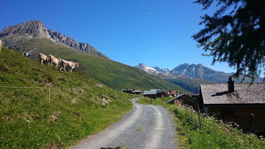 Man erreicht schliesslich das Tälchen L`Ondadusa. Sobald man die Hütten von Sum Praus erreicht, schwenkt man hinter dem ersten Stall auf einen breiten unmarkierten Weg ein. Am Ende ist es nur noch ein Viehpfad, der in die Val Strem führt. Von hier ist es nicht mehr weit bis zum Bahnhof Sedrun.