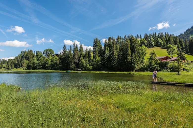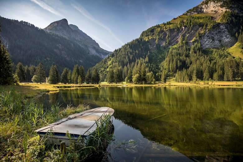 Auf dem abfallenden Bergweg erreicht man das Naturreservat des Lauenensees. Hier kann man mit dem Postauto bis nach Gstaad zurück fahren oder man läuft weiter bis nach Lauenen Dorf (1.241 m, ca. 4 km) und besteigt das Postauto dort.