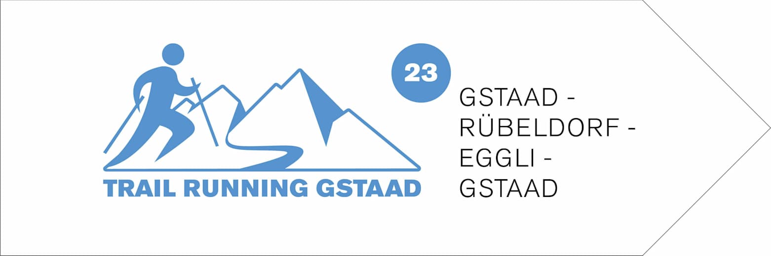 Man startet direkt beim Sportzentrum in Gstaad und folgt den Wegweisern Trail Running Gstaad Nr. 23. Zuerst geht man hinter dem Sportzentrum rechts über eine Brücke und weiter Richtung Saanen. Kurz nach dem Reitzentrum geht es Links hoch Richtung Eggli.