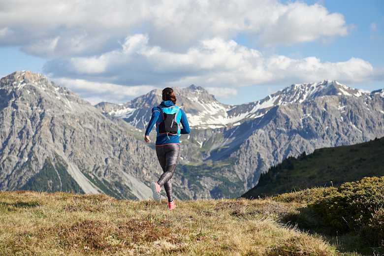 Abwechslungsreicher Trailrun in den Plessur-Alpen Graubündens: Der Trail beginnt gleich mit einem relativ steilen Anstieg durch den Wald nach Maran. Dann wird der Weg etwas flacher und schlängelt sich durch bunte Alpwiesen.