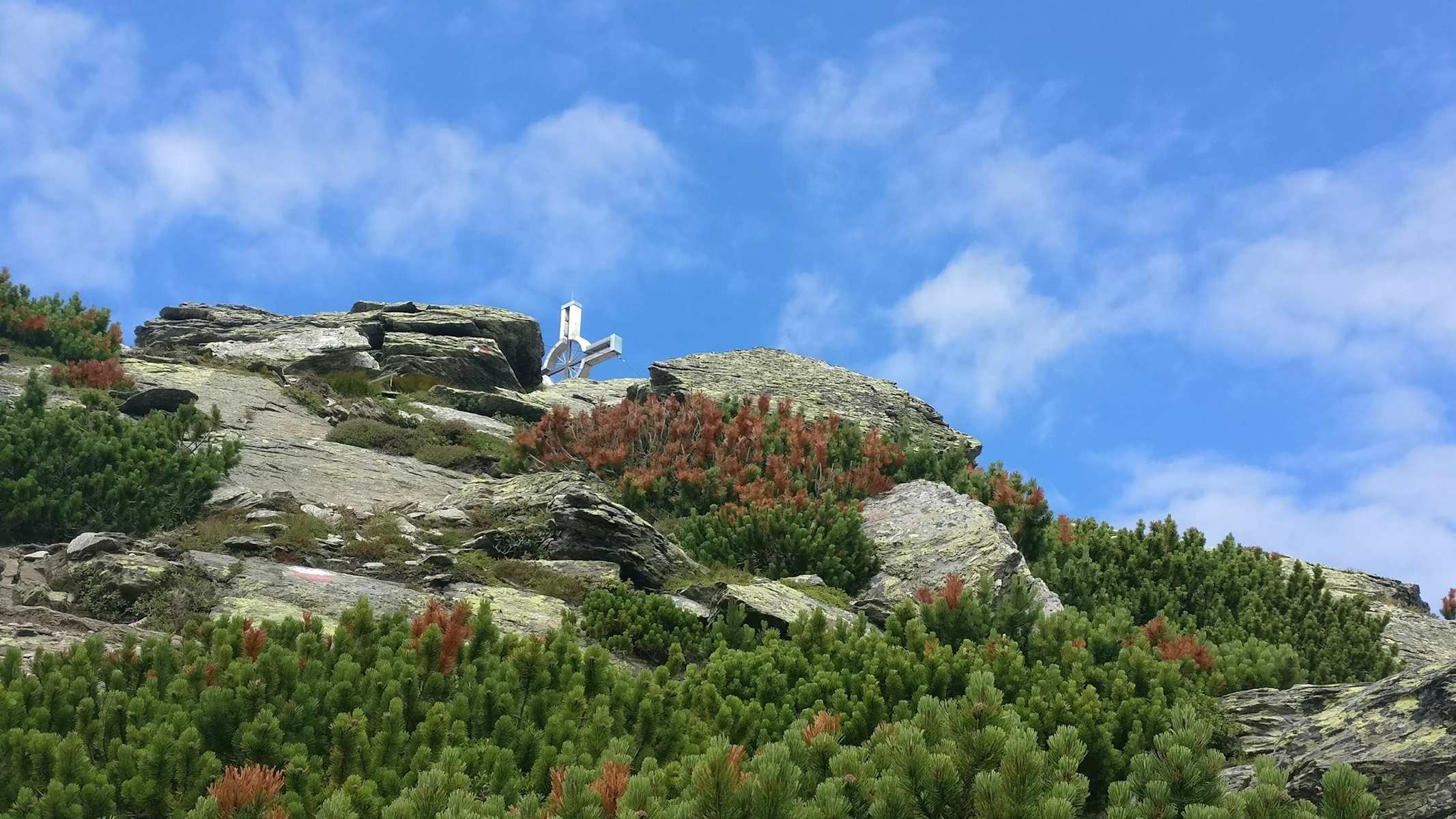 Nach gut 4,5km erreicht man das Gipfelkreuz. Von hier aus ist auch schon das nächste Zwischenziel, die Neunerspitze, gut erkennbar. Über den teilweise markierten Steig läuft man zum letzten Gipfel, der Neunerspitze (2.285 m).