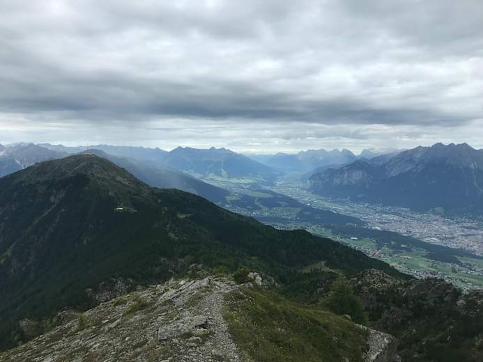 Warum man den Trail in den Tuxer Alpen unbedingt machen muss? Sagenhafte Tiefblicke auf Stadt Innsbruck und das Inntal sowie die schöne Gebirgslandschaft machen die Strecke in Tirol zu einem echten Highlight.
