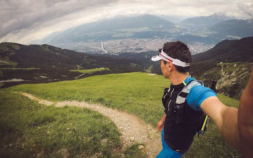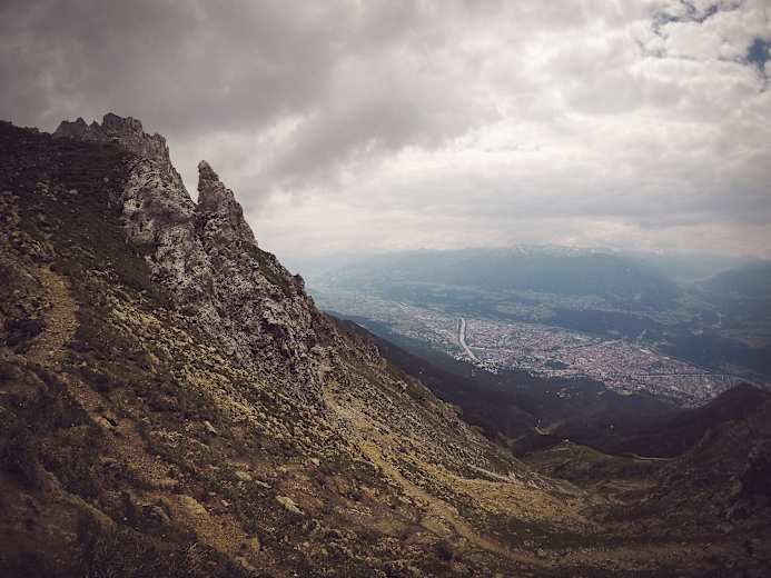 Ausgehend von der Hungerburg, hoch über den Dächern Innsbrucks, läuft man entlang der Forststraße Richtung Umbrüggeler Alm (1.123 m). Von dort über abwechslungsreiche Trails weiter zur Höttinger Alm (1.487 m).