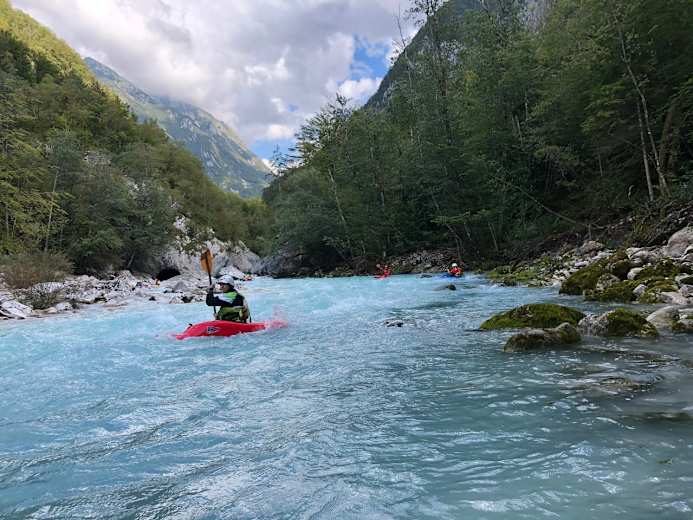 Die Soča in Slowenien ist einer die beliebtesten Flüsse für Paddler. Der erste Abschnitt beginnt in Lepena beim Camping Klin und führt bis zur Mündung der Koritnica mit dem Camp Kovač bei Bovec.