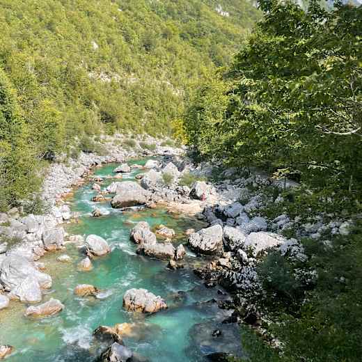 Auf diesem Abschnitt steigert die Soča nochmal die Schwierigkeiten und auch die Gefährlichkeit um einen Grad. Auf weniger als einem Kilometer bekommt man Einiges geboten. Die Slalomstrecke zeigt sich technisch interessant und je nach Wasserstand freundlich und nett oder flott und wuchtig.