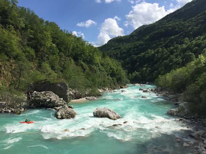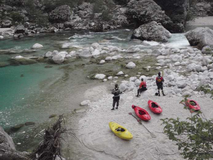 Kajak- und Kanutour Soča, Etappe 9: Wanderstrecke - Napoleon Brücke bei Kobarid bis Kamno/Volarje/Voljamski most