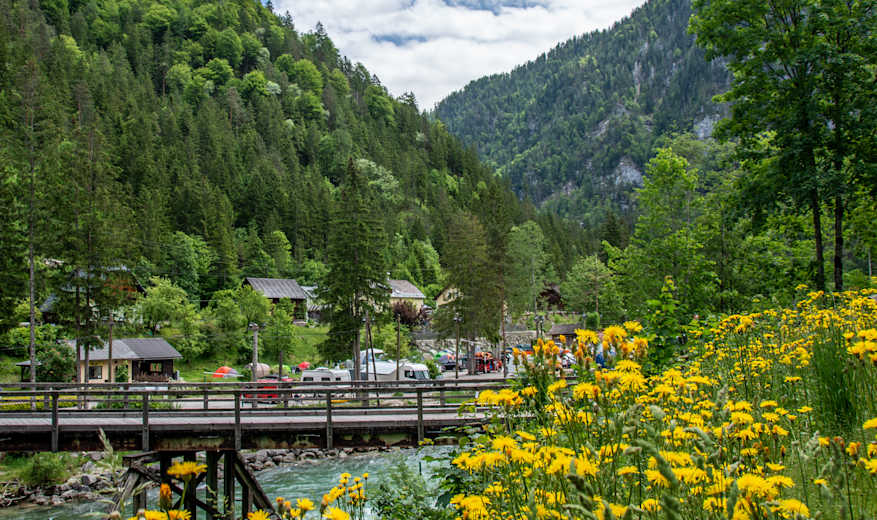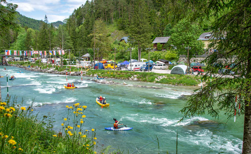In Wildalpen findet man nicht nur eine Spielstelle für Kajakfahrer, sondern auch mehrere Campingplätze direkt am Fluss.Foto: Florian Lierzer / Red Bull Media House Publishing