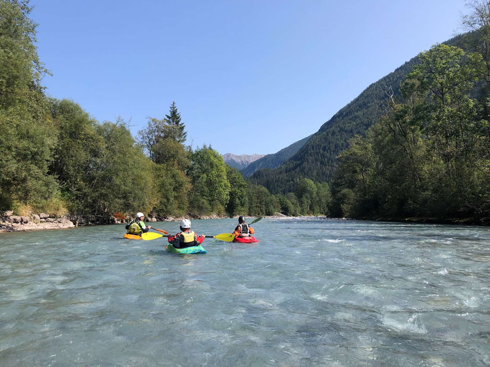 Eine Flussstrecke von 42 km zwischen Steeg und Weißenbach ohne ein einziges Wehr, dazu die großartige Bergkulisse der Lechtaler und Allgäuer Alpen lockt viele Paddler in die Region.