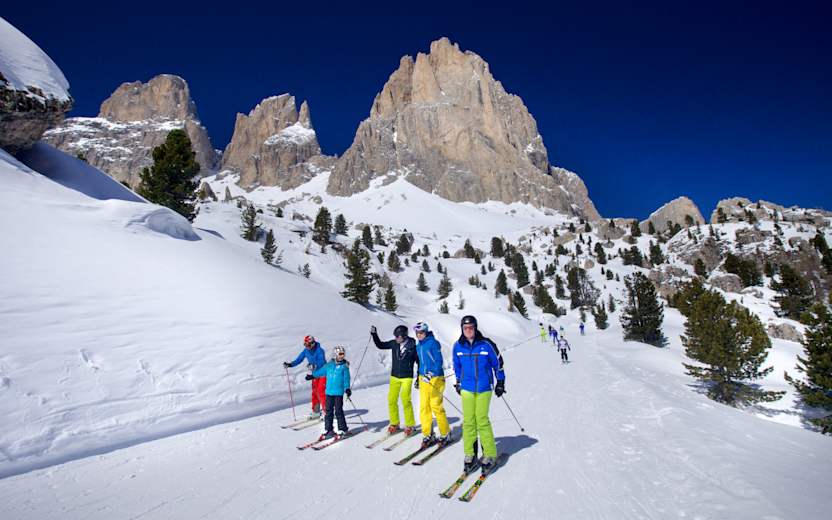 Die Sellaronda im Uhrzeigersinn kann an jeder beliebigen Seilbahn gestartet werden. Das Edelweißtal in Colfosco und die Pisten der Porta Vescovo sind lohnende Abstecher.