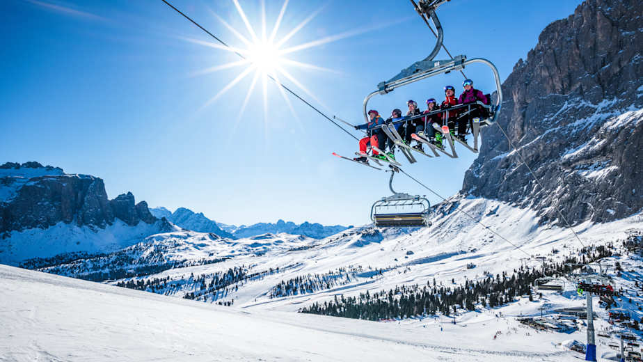 Zurücklehnen und Aussicht genießen: Eine kurze Pause im Sessellift tut auf der Sellaronda gut. Foto: valgardena.it