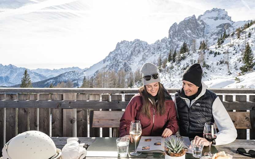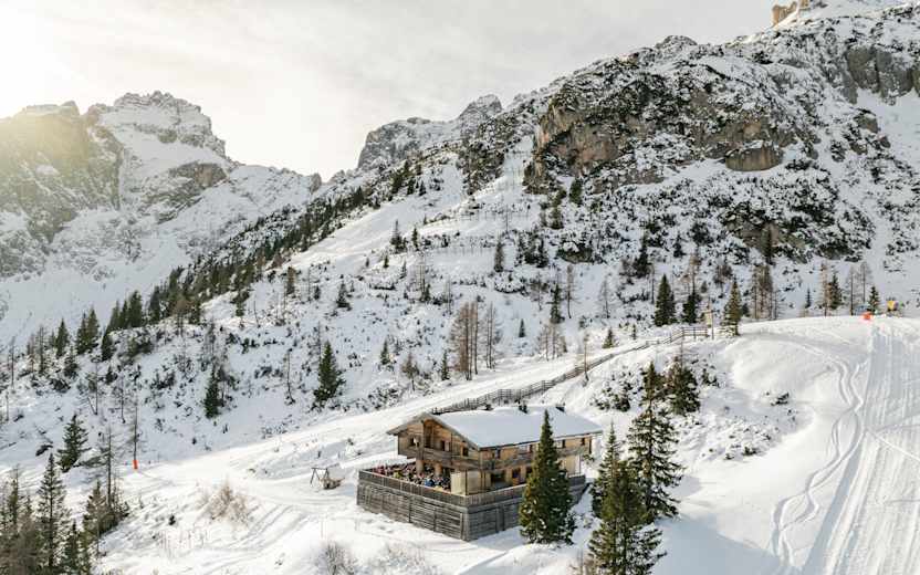 Einkehrschwung gefällig? Auf der Gran Giro delle Cime im Hochpustertal warten urige Hütten.Foto: 3 Zinnen Dolomites / Wisthaler