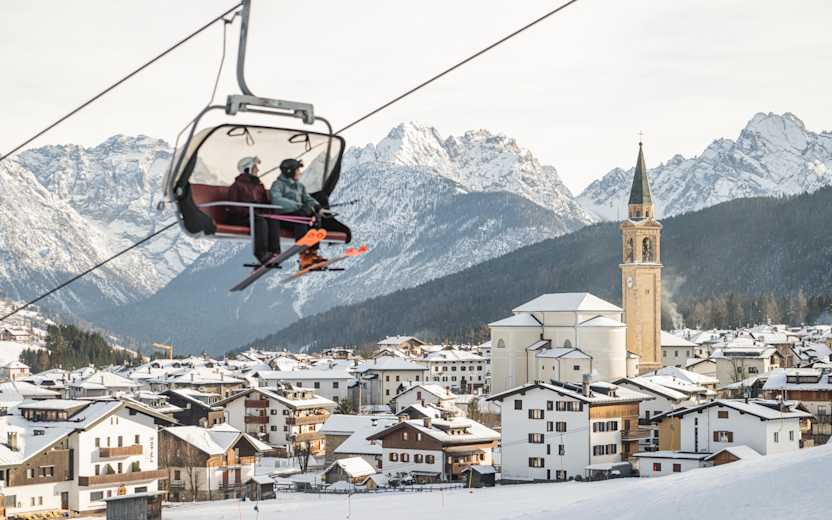 Mit der Col d’la Tenda-Bahn geht es bergauf. Direkt an der Bergstation bietet sich eine Einkehr in der Skihütte Col d'la Tenda an. Auf der sonnigen Terrasse genießt man Spezialitäten aus dem Cadore – ein idealer Platz für die Mittagspause. Nach der Abfahrt bringt einen der Skishuttle SALTO zurück zum Kreuzberg.