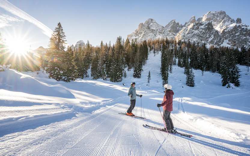 Auf die Grande Giro delle Cime startet man in Vierschach-Helm und umrundet die höchsten Gipfel der Sextner Dolomiten auf rund 70 Kilometern und 5.925 Höhenmetern. Dabei darf man sich über rasante Abfahrten und beeindruckende Aussichten freuen. Über aussichtsreiche Pisten verbindet die Runde die fünf Skigebiete Helm, Stiergarten, Rotwand, Kreuzberg und die Ski Area Val Comelico und eröffnet immer wieder neue Perspektiven auf die markanten Dolomitengipfel.