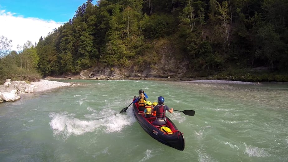 Die Saalach bietet Schwierigkeiten für jeden Wildwasserfahrer. Der Abschnitt von Au bis Unken ist Wildwasser 3 und bietet sich für Fortgeschrittene für SUP oder Kajak-Wildwasserfahrten an.