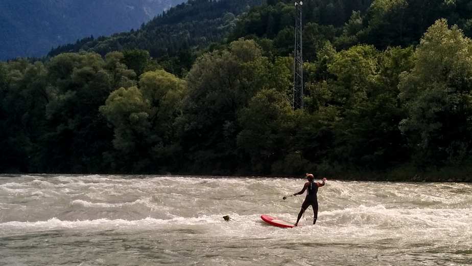 Den Salzach-Surfern zuschauen macht wirklich Spaß - noch besser aber: Probiert es selbst mal aus. Mit dem SUP-Board lassen sich schon die kleinen Nebenwellen gut surfen.