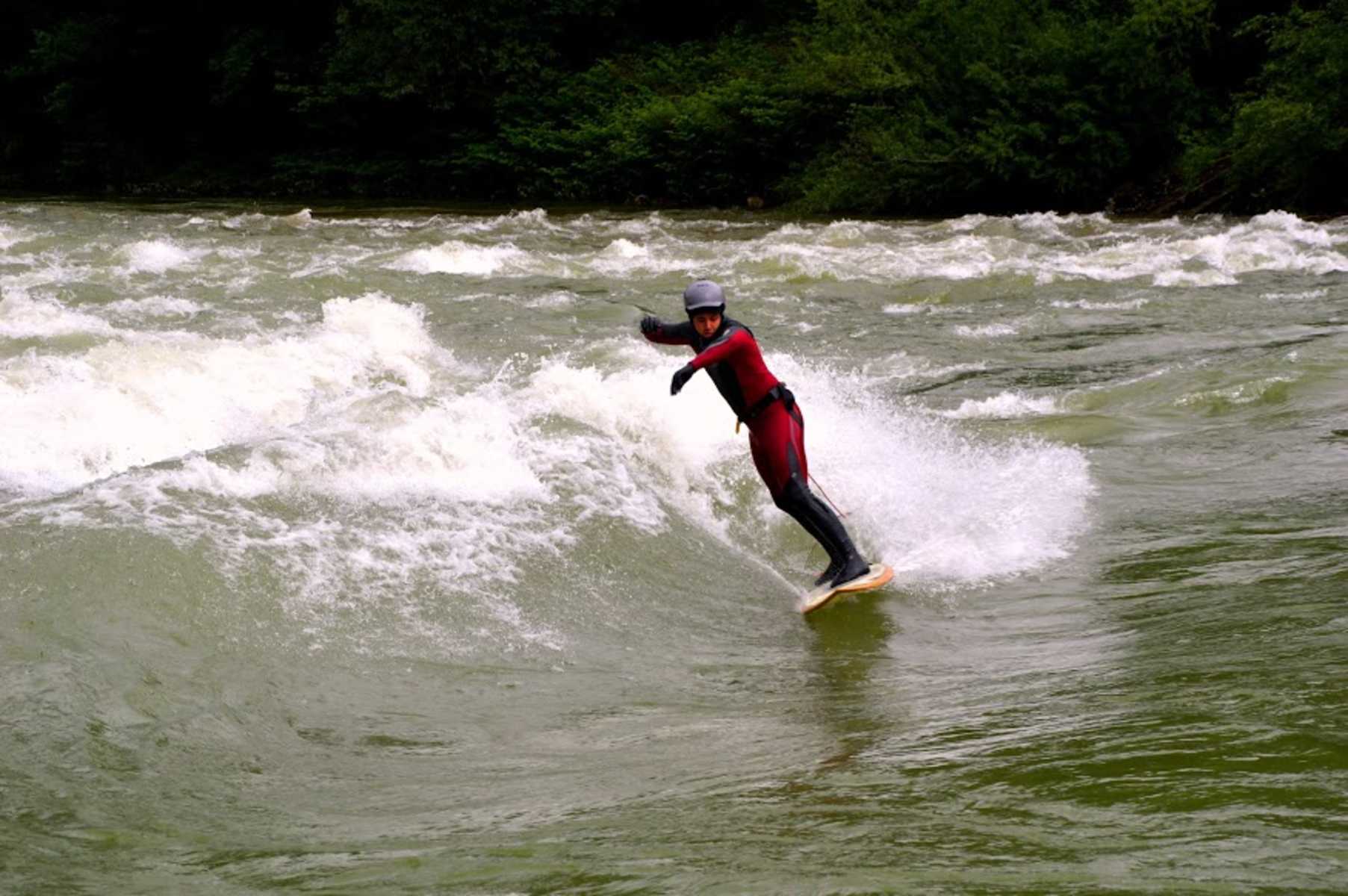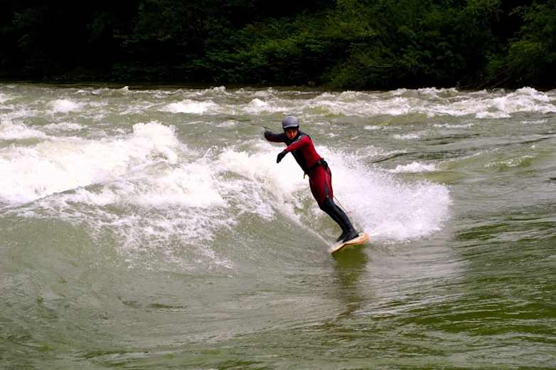 Beim Namen Pipeline denkt man an den berühmten Surfspot auf Hawaii, doch gar so weit braucht man dafür nicht reisen. Eingebettet zwischen dicht bewaldeten Bergen liegt diese Welle, die den Namen von den Rohrleitungen hat über welche man klettern muss, am südlichen Ende von Bad Ischl im Salzkammergut. Aufgrund von Umbauarbeiten im Fluss ist diese Welle erst vor kurzem entstanden, hat sich seitdem etwas verändert und bietet aber noch immer viele verschiedene Gesichter. Je nach Wasserstand kann man von extrem flach bis hin zu unglaublich steil alles erleben.
