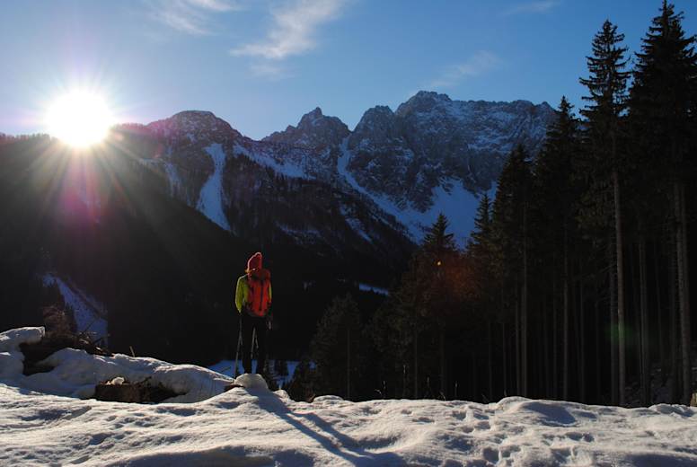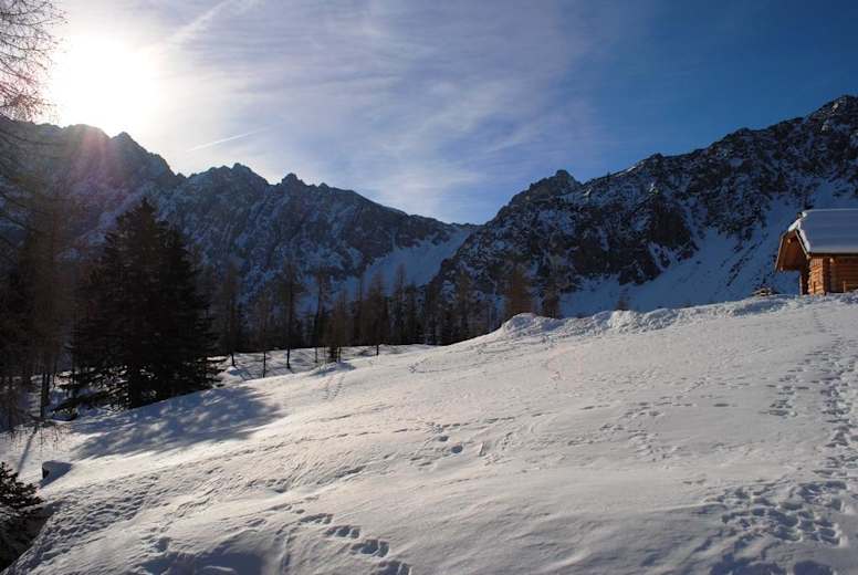Schöne, meist ausreichend ausgetretene Schneeschuhwanderung bis zur Ogrisalm in der Carnica-Region Rosental. Entlang der Strecke genießt man eindrucksvolle und imposante Einblicke in die schroffen Nordwände der Kärtner Karawanken, wie beispielsweise die des Kosiaks (2.024 m). Die nicht bewirtschaftete Ogrisalm bietet außerdem einen schönen Rastplatz.